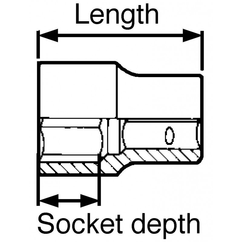 Metrická šesťhranná hlavica krátka. Vyrobená z chróm-vanádiovej ocele. Matne chrómovaná. Podľa DIN 3124 / ISO 2725.